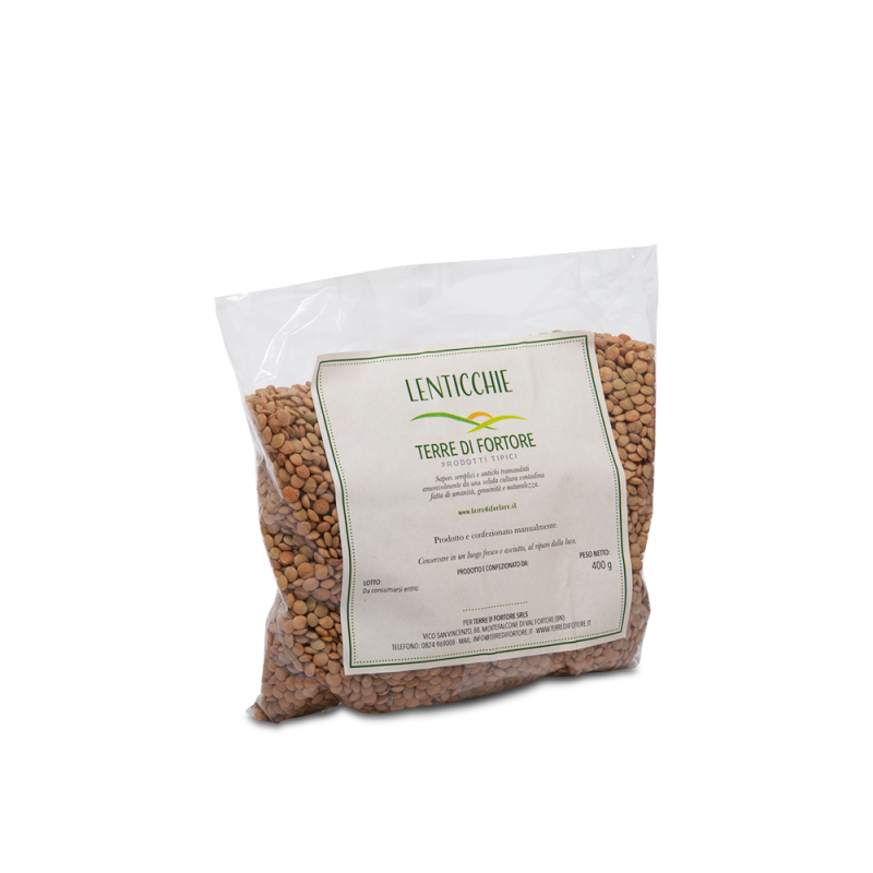 Piccole, delicate e dal colore rosso bruciato, le Lenticchie Terre di Fortore sono una vera prelibatezza. A conferire queste peculiarità e tipicità al prodotto, anche in questo caso sono le caratteristiche orografiche del territorio, i suoi terreni incontaminati e le altrettante tecniche di coltivazione pressoché biologiche. Per le sue piccole dimensioni, risultano particolarmente tenere e per essere cucinate non abbisognano di alcun accorgimento. Ancora oggi vengono selezionate con il sistema tradizionale e conservate in sacchi di tela. La cernita finale, prima del confezionamento, è effettuata rigorosamente a mano.